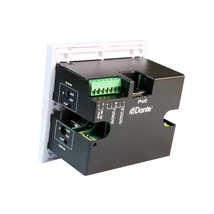 ממשק 2CH Dante ממשק 2 מיקרופון/קו כניסות X 2 פלט ממשק פלטים מושלם ליישומי שמע מקצועיים, כגון חדרי ישיבות, הגדרות סאונד חי, אולפני שידור, ומערכות AV מותקנות, בהן נדרשים המרה של דנט-לאנלוג ואנלוגי לאנלוגי-לא-דנטה בגורם קומפקטי נטול מתלה. העיצוב המותקן על הקיר מאפשר שילוב נקי ויעיל בסביבות שונות תוך שמירה על ביצועי שמע באיכות גבוהה.