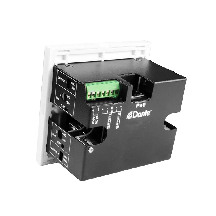 ממשק 2CH Dante ממשק 2 מיקרופון/קו כניסות X 2 פלט ממשק פלטים מושלם ליישומי שמע מקצועיים, כגון חדרי ישיבות, הגדרות סאונד חי, אולפני שידור, ומערכות AV מותקנות, בהן נדרשים המרה של דנט-לאנלוג ואנלוגי לאנלוגי-לא-דנטה בגורם קומפקטי נטול מתלה. העיצוב המותקן על הקיר מאפשר שילוב נקי ויעיל בסביבות שונות תוך שמירה על ביצועי שמע באיכות גבוהה.